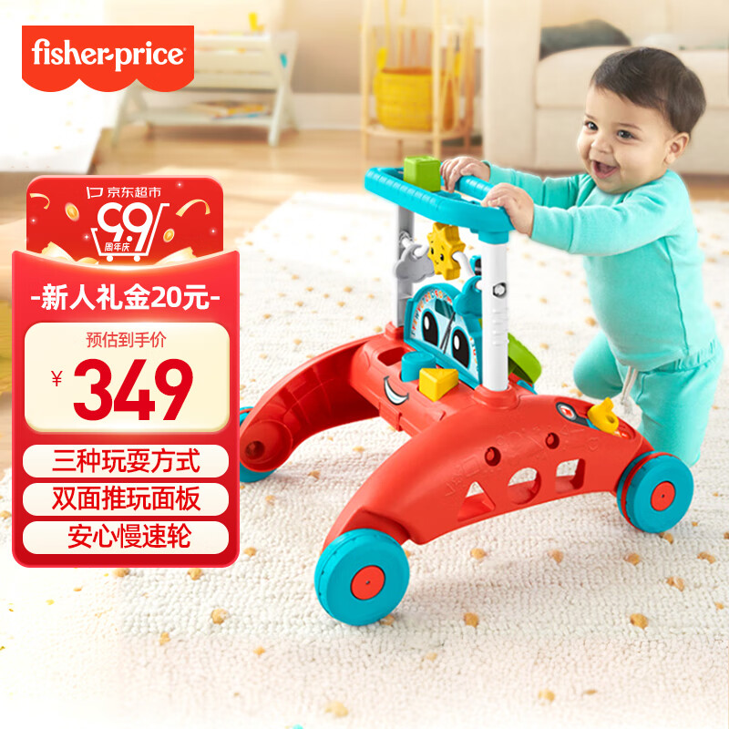 费雪(Fisher-Price)婴幼儿学步车儿童宝宝生日礼物礼盒-费雪多功能双面助步车HJP83