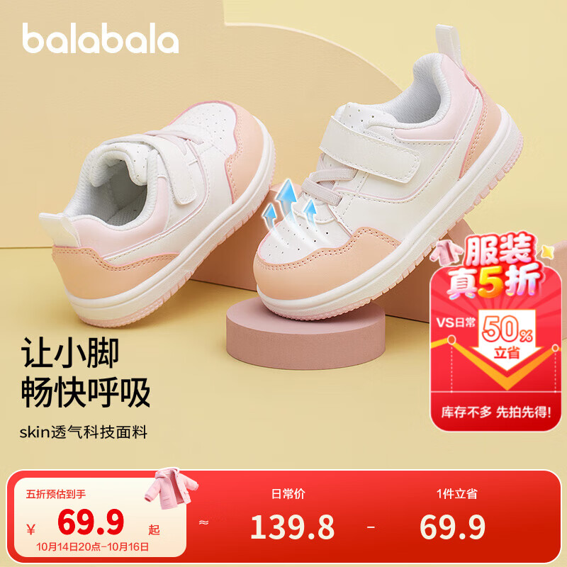 巴拉巴拉宝宝学步鞋婴儿鞋子男童鞋女春秋平板车鞋纯色简约小白鞋 米白10301 22码