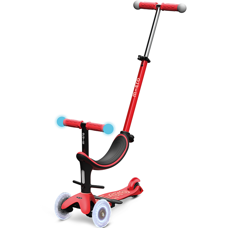 m-cro/micro儿童滑板车可坐可骑1-6岁四合一宝宝学步车溜溜车踏板车 【四合一豪华款】红色+护宝