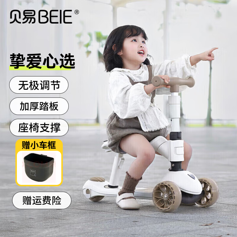 贝易滑板车升至尊Pro1到3岁6岁宝宝儿童车婴儿滑行学步车溜娃神器 【至尊Pro】二合一-贝易卡其