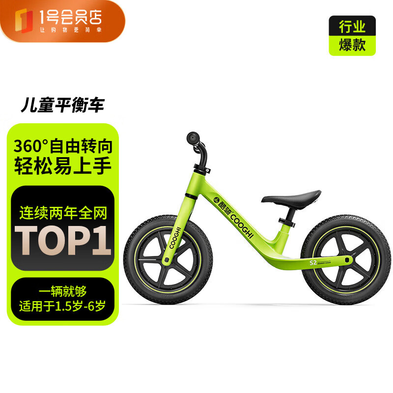 酷骑儿童平衡车1-6岁男孩女孩滑步车学步车无脚踏自行车12寸S2 酷骑绿