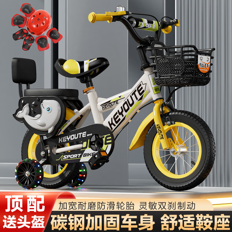 百亿补贴:阿米达儿童自行车3-6岁单车男女孩2-5-7-10岁踏板车轻便款带辅助轮 顶配黄【悍马轮+后座靠背+礼包】 16寸(身高105-115CM,约4-6岁)