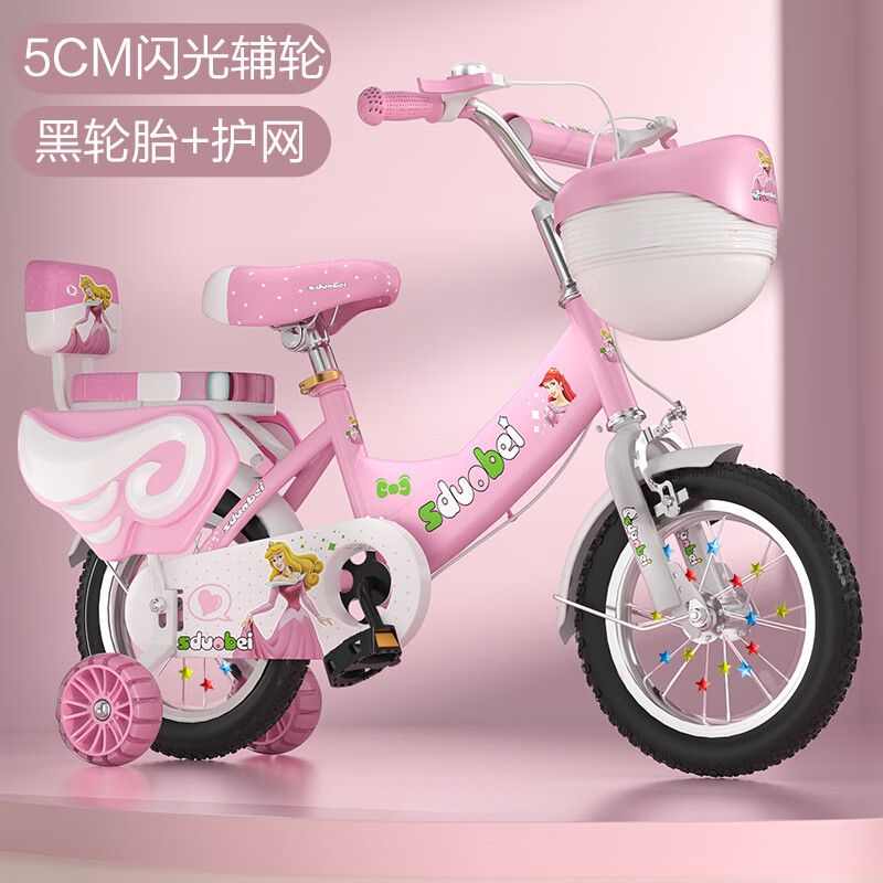 百亿补贴:巴布豆儿童公主款轻便自行车3-6-9岁女孩初学带辅助轮脚踏车可选折叠车 蓝色/米悍马轮/折叠款+护网 14寸90-110cm适合3-5岁宝宝
