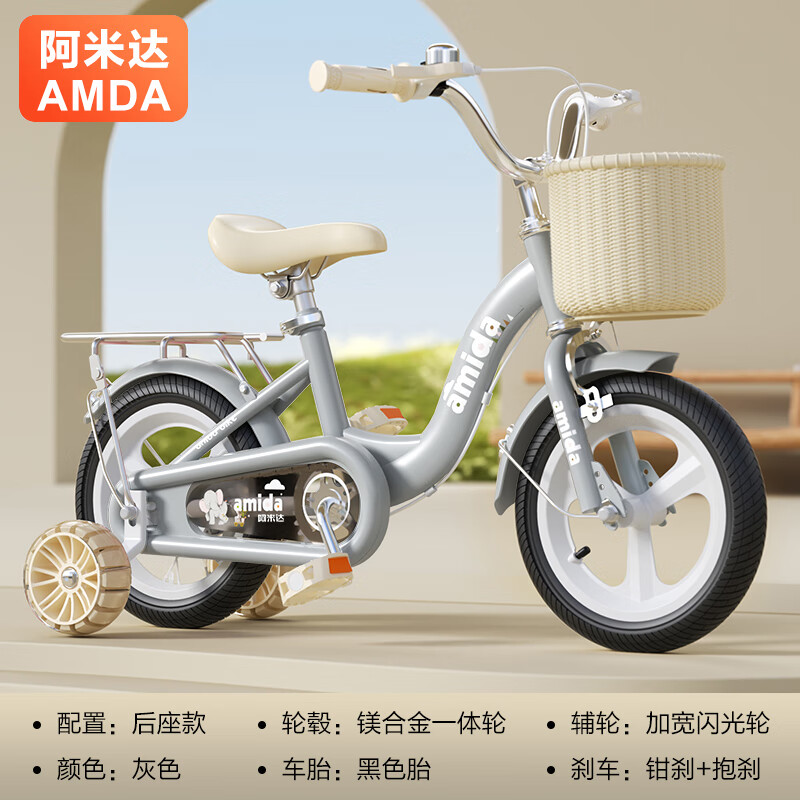 百亿补贴:阿米达儿童自行车3-6岁男孩两轮单车4-8-10岁女孩脚踏车2岁男女宝宝童车 黑胎灰-一体轮+悍马轮+后座+礼包 20寸适合125-160cm