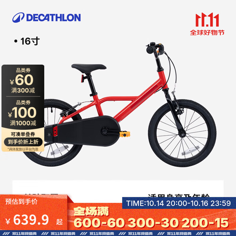 迪卡侬(DECATHLON)儿童自行车单车脚踏车男孩女孩宝宝童车 16寸儿童自行车红色