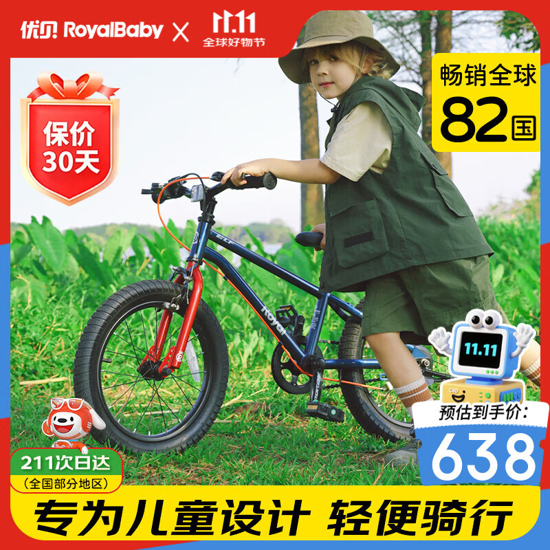 优贝(RoyalBaby)儿童自行车6-9岁男女童车宝宝脚踏车山地车 小精灵 星空蓝18寸