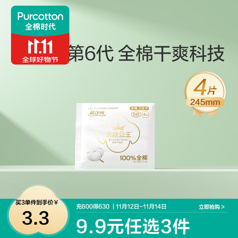 全棉时代卫生巾尝鲜组合10元任选3件 超净吸OK包4片装