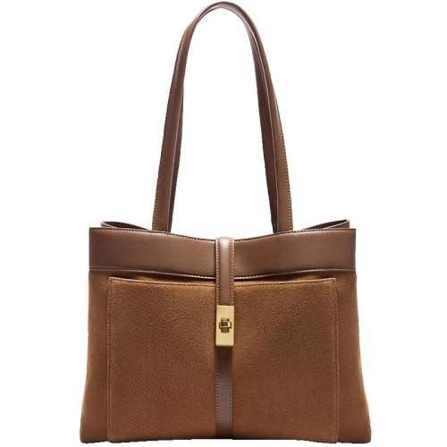 棕色 百丽包包女 新通勤大容量 绒面单肩托特包送妈妈M7521CX4