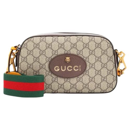 老花 通用 Gucci/古驰列帆布乌木色通用款虎头相机包单肩包