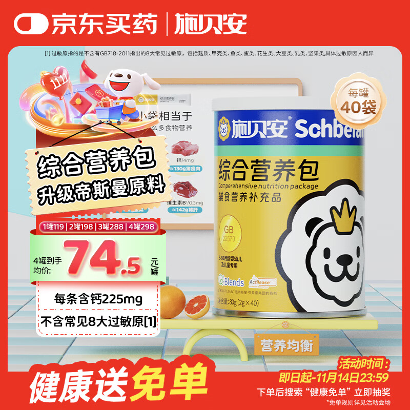 百亿补贴:施贝安综合营养包40条钙铁锌国婴幼儿童宝宝家辅食包综合婴儿青少年补钙 3罐 40条/罐