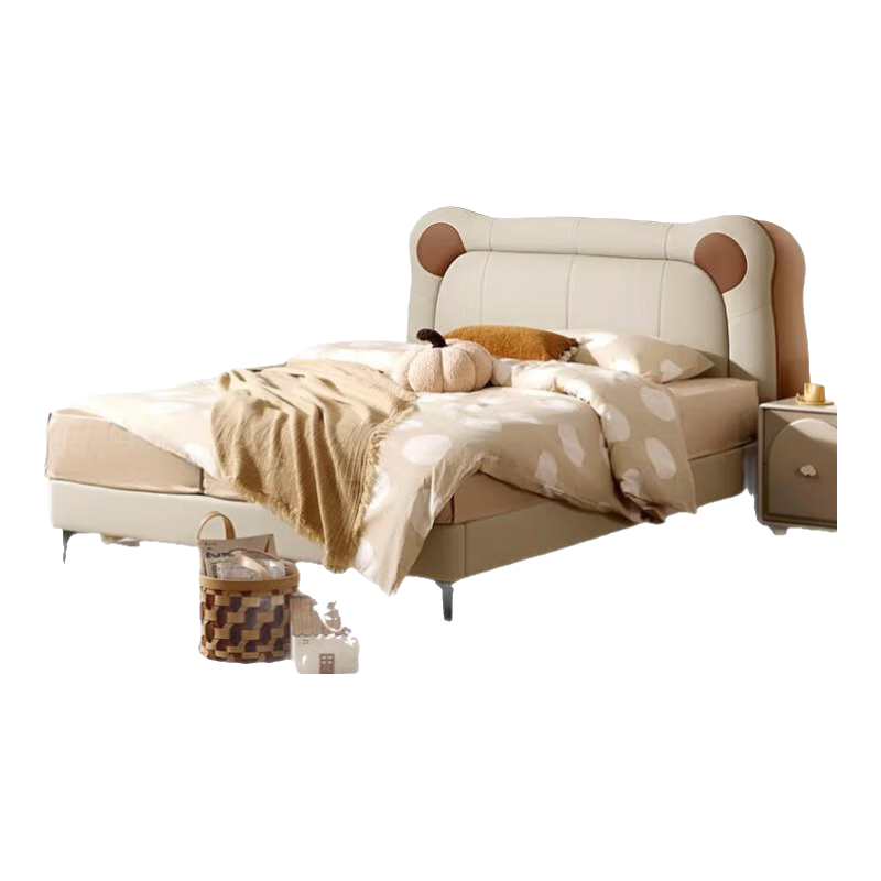 顾家家居政府补贴 奶油风头层牛皮卧室温馨抱抱熊软包床男孩女孩皮床8552 【小象灰】高脚皮床 1500*2000