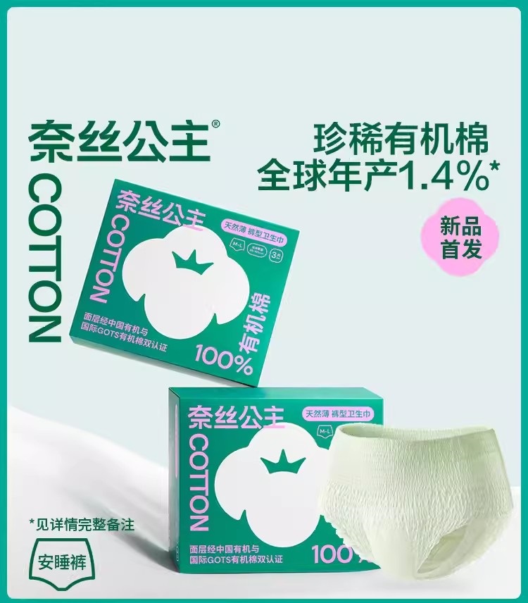 全棉时代奈丝公主有机棉安睡裤卫生巾成人护理经期裤防漏夜用6片