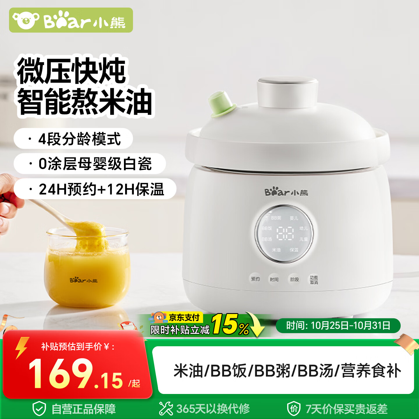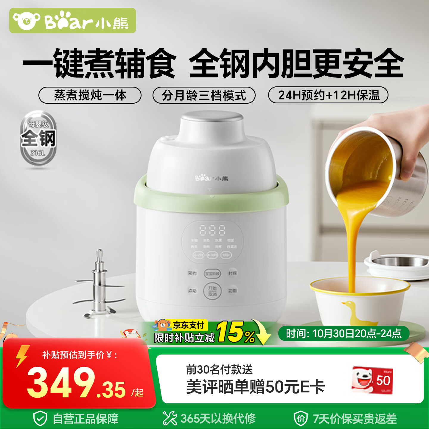 小熊(Bear)婴儿辅食锅 电炖锅陶瓷 炖煮米油分月龄直炖微压辅食料理机炖盅1L