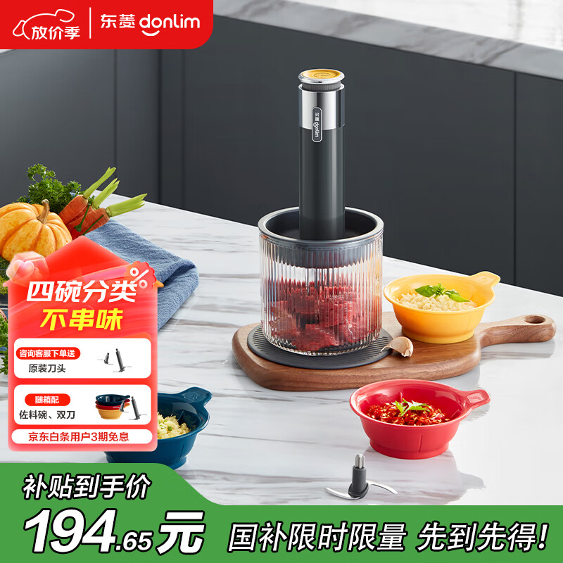 东菱(Donlim) 绞肉机 家用电动小型碎菜搅拌绞辣椒绞蒜 全自动多功能宠物料理机 馅料辅食百味佐料机DL-6082 四碗双刀(有线加强款) 1L