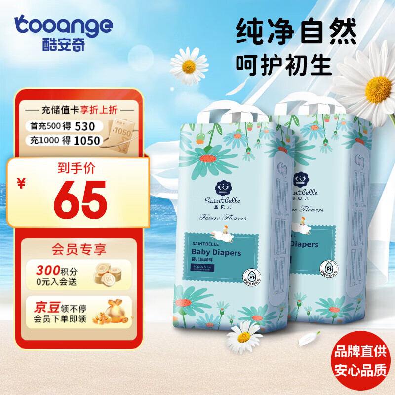 酷安奇 COOANGE圣贝儿纸尿裤L码80片(9-14kg)弱酸亲肤医护级尿不湿加量装