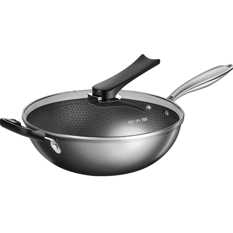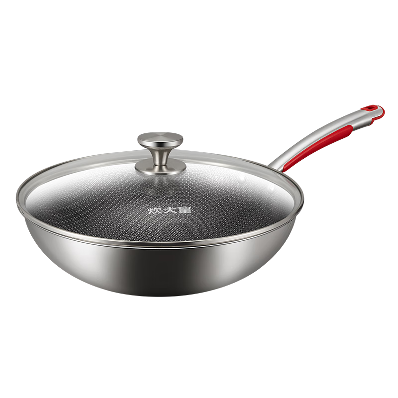 炊大皇 炒锅 304不锈钢炒菜锅平底不粘炒锅34cm 可立可视盖不挑灶
