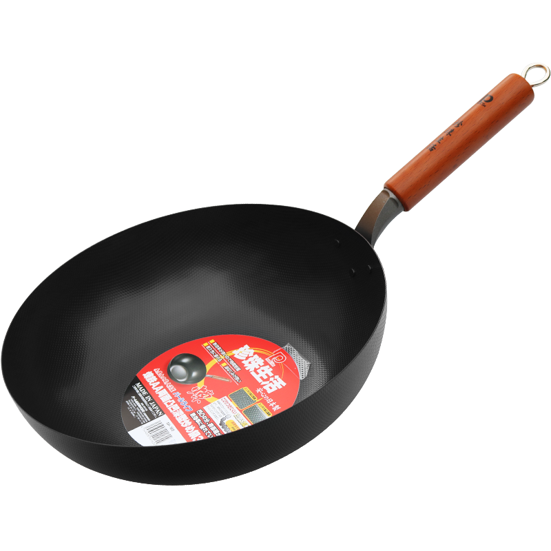 珍珠生活日本进口铁锅 家用炒菜锅 无涂层不易粘锅 轻盈健康耐用熟铁炒锅