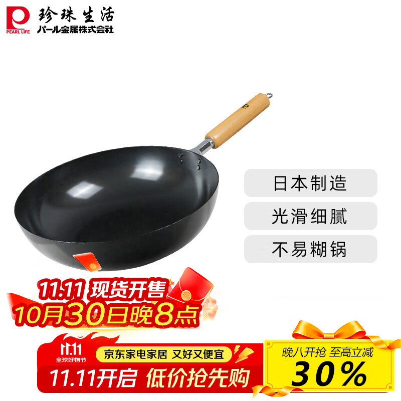 珍珠生活(Pearl Life)日本原装进口铁锅炒锅无涂层家用炒菜铁锅30cm轻盈健康锅具