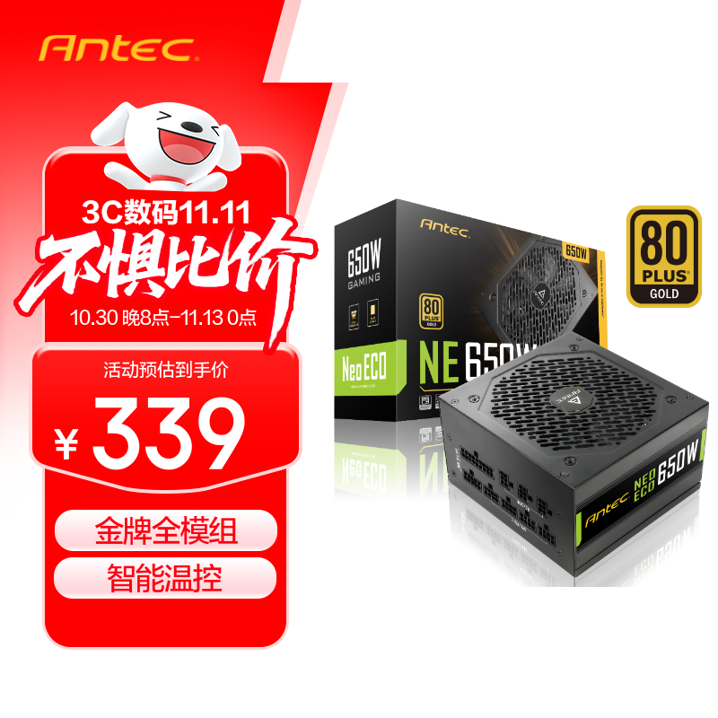 百亿补贴:安钛克Antec NE650W电脑电源 金牌全模组/全日系电解电容/92%转换效率/ATX3.1/风扇启停电脑主机电源850W NE650黑色金牌ATX3.1+PCIE5.1