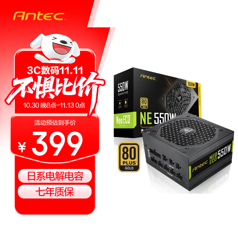 安钛克 Antec NE550金牌全模组/全日系电解电容/寿命更持久/支持风扇启停/台式机电脑主机电源550W