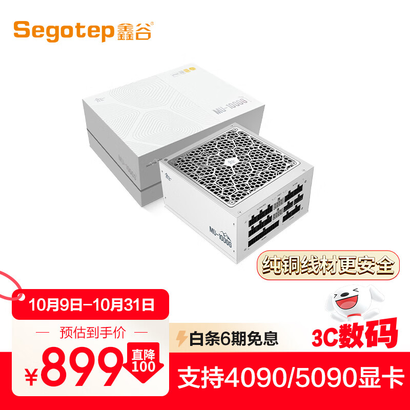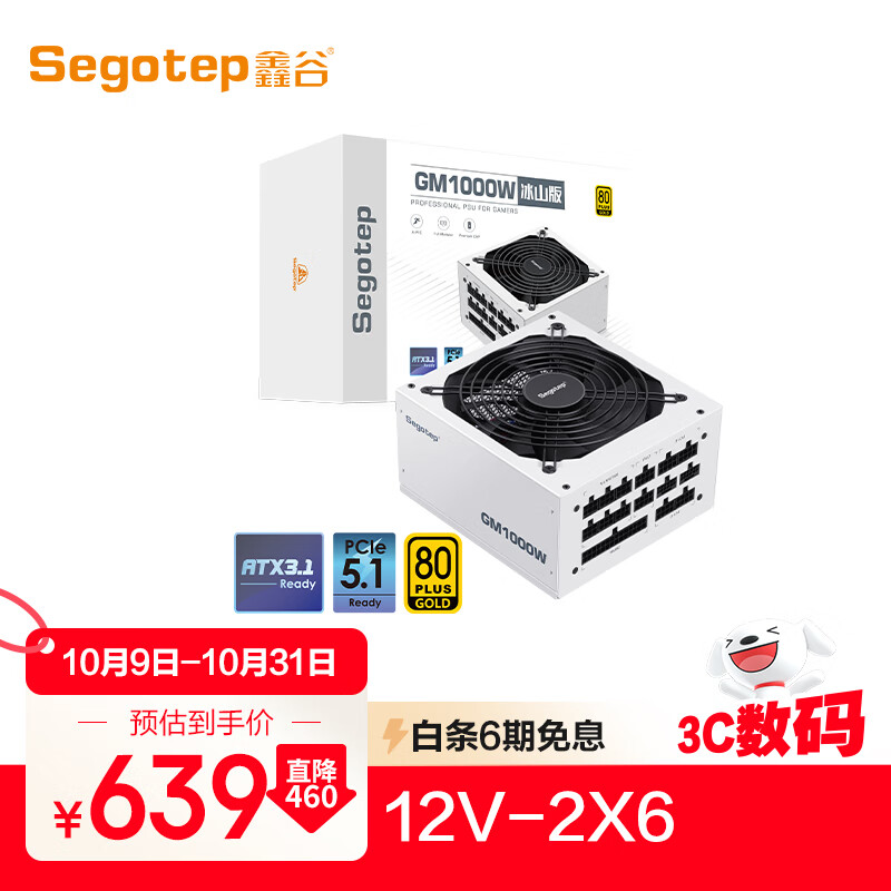 鑫谷(segotep)GM1000W ATX3.1冰山版金牌全模组电源(12V-2X6支持5080/5090显卡/白色模组线/台式电脑主机电源)