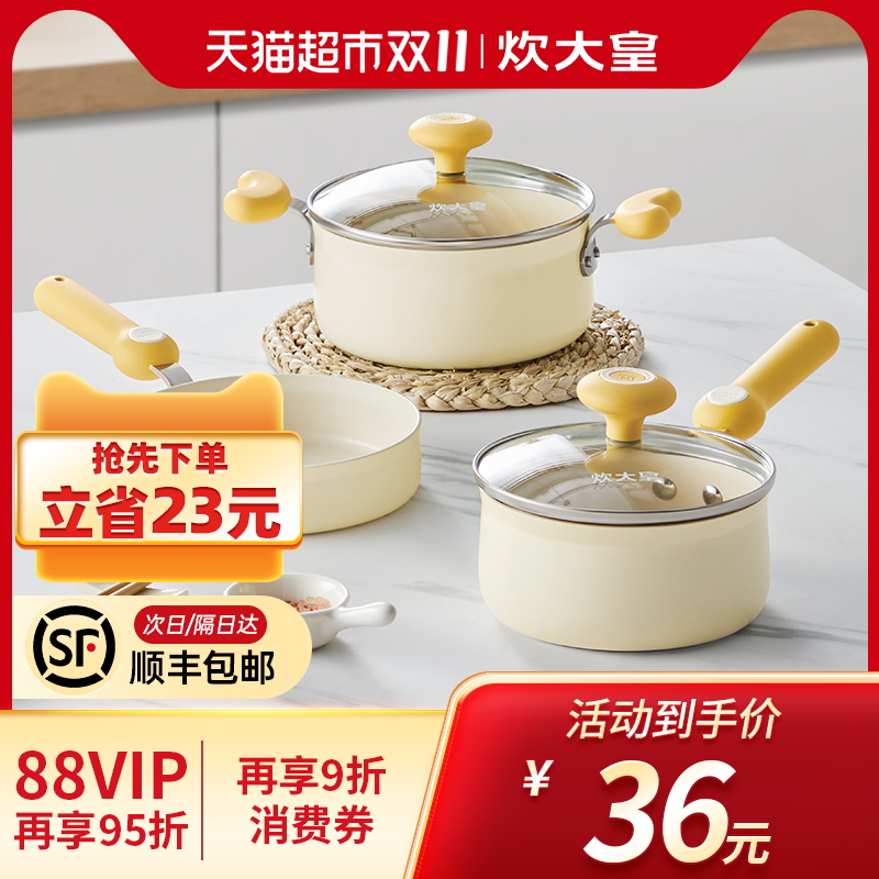 炊大皇奶锅宝宝辅食套装锅多功能汤锅平底煎锅煮泡面热牛奶不粘锅