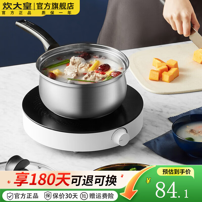 炊大皇 奶锅 304不锈钢小汤锅 18cm 无涂层泡面锅热奶锅 煮奶婴儿辅食锅