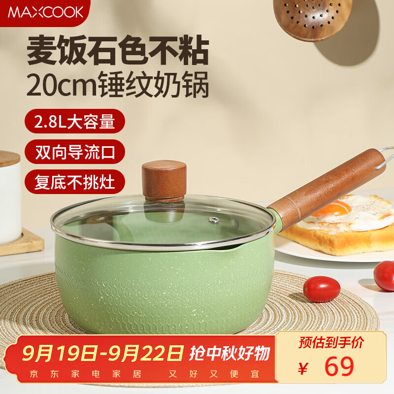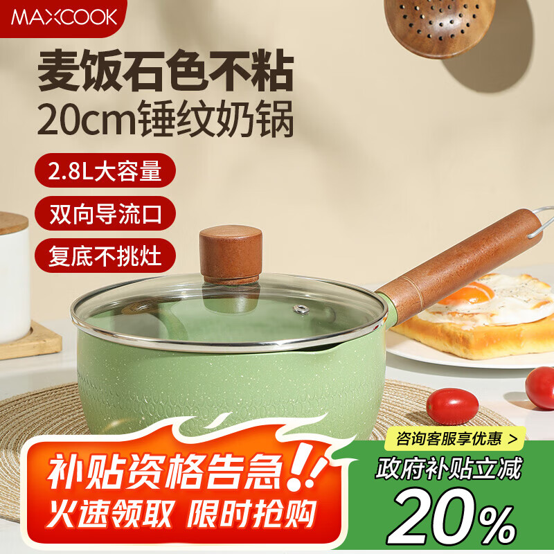 美厨(maxcook)雪平锅 锤纹铝合金不粘奶锅 煮面汤锅宝宝辅食锅 炉灶通用MCJ6132