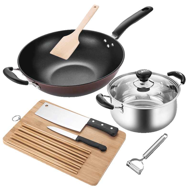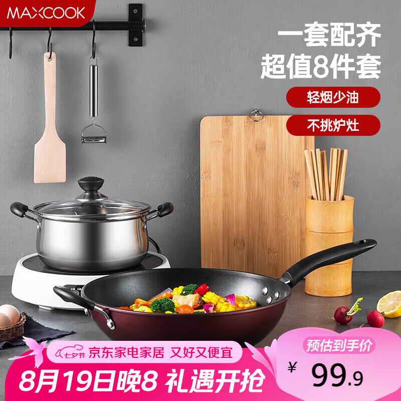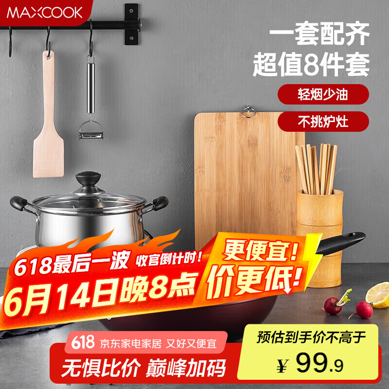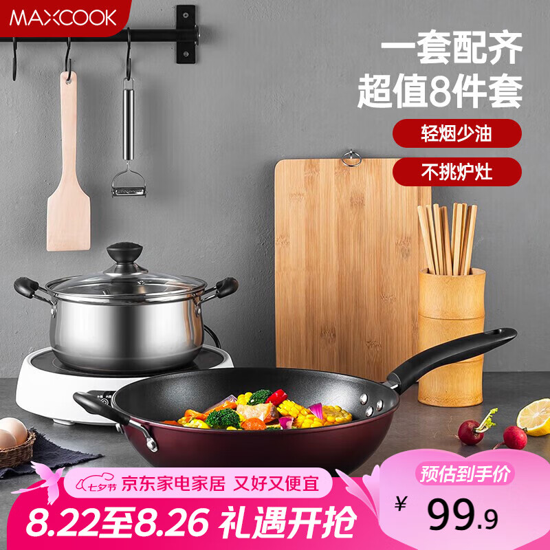美厨(maxcook)锅具套装炒锅汤锅砧板菜刀筷子木铲削皮刀小刀厨具8件套 MCTZ004