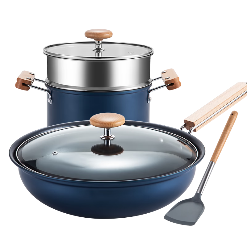 美厨(maxcook)锅具套装炒锅不粘锅四件套汤锅蒸锅奶锅不粘锅 配硅胶铲MCTZ7695