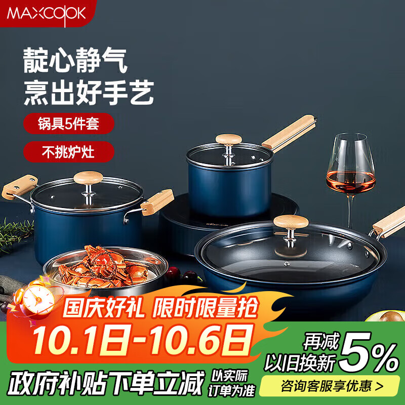 美厨(maxcook)锅具套装炒锅不粘锅五件套炒锅汤锅蒸锅不粘锅 配硅胶铲MCTZ7542