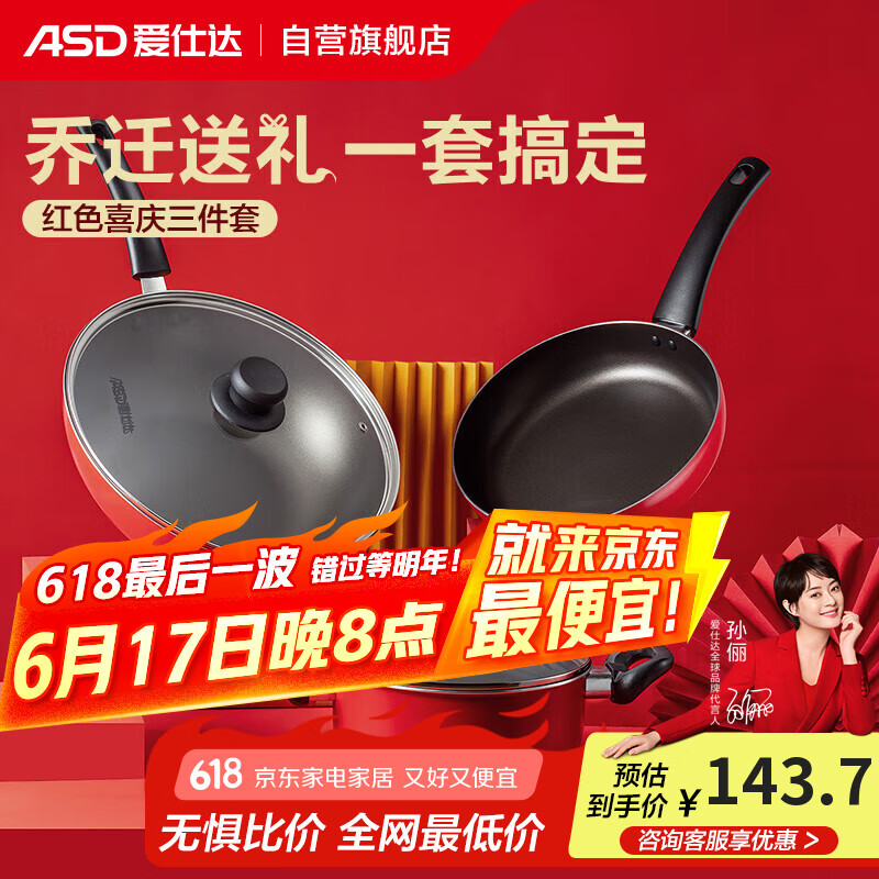 爱仕达锅具套装不粘锅家用三件套厨房煎锅炒锅全套燃气灶明火专用
