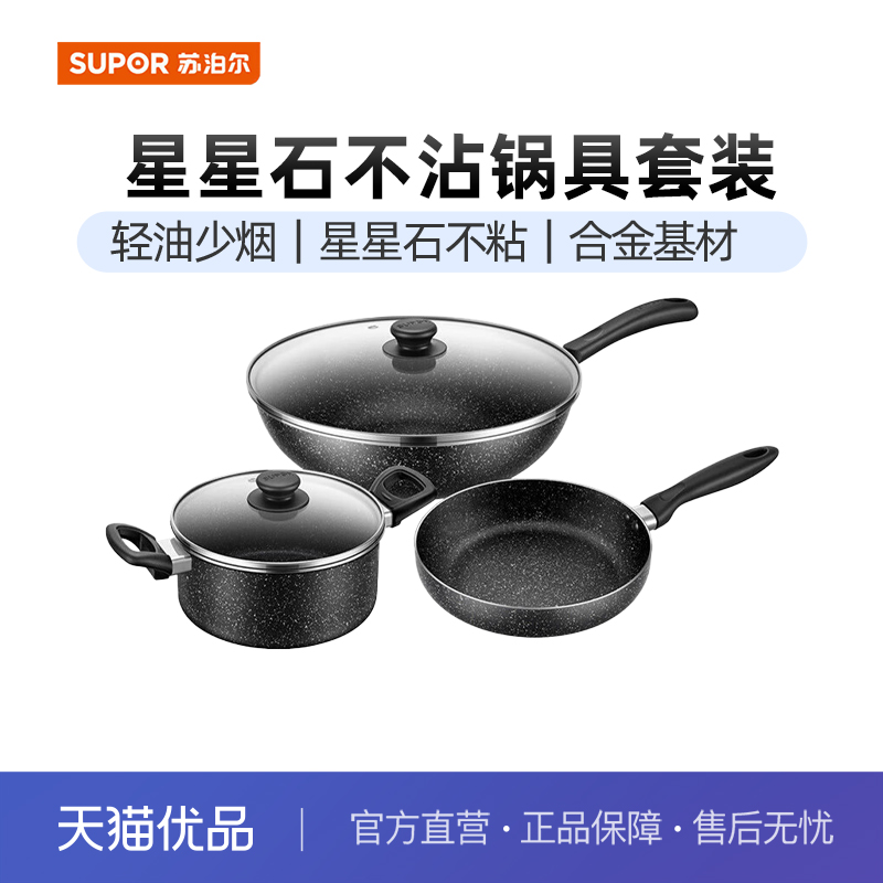 VTP2405T-30cm炒锅+24cm煎锅+20cm汤锅 苏泊尔(SUPOR)星星石不粘三件套锅具套装磁灶通用VTP2405T