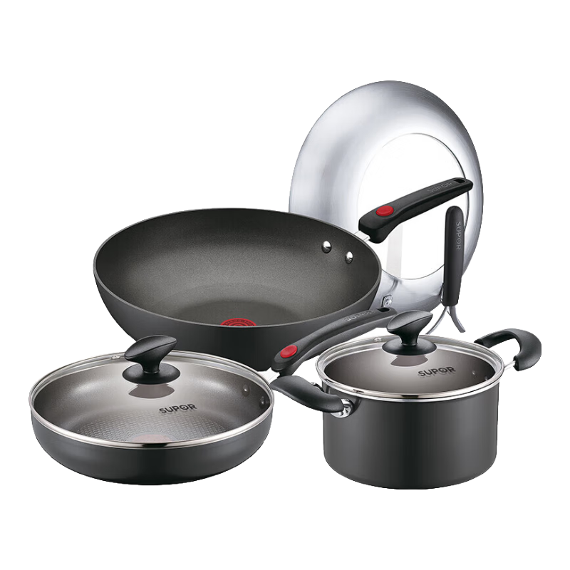 苏泊尔(SUPOR)多功能可拆卸手柄锅具套装铝合金不粘锅炒锅煎锅奶锅锅盖磁炉通用 炒+煎锅+奶锅+锅盖+手柄- 6件套