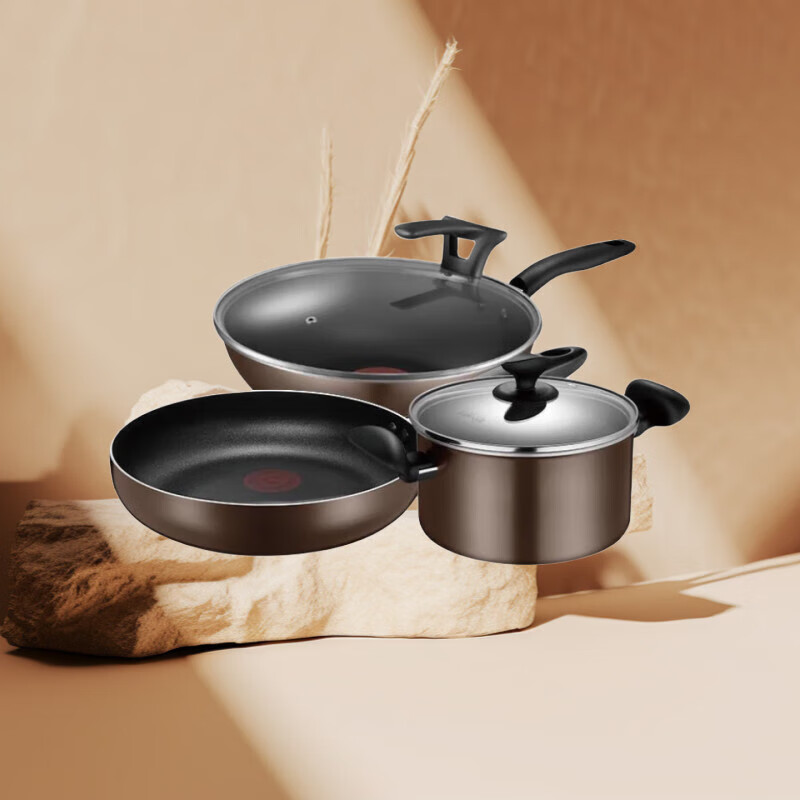 苏泊尔(SUPOR) 锅具套装不粘锅三件套炒锅汤锅煎锅厨具套装火红点系列磁炉通用