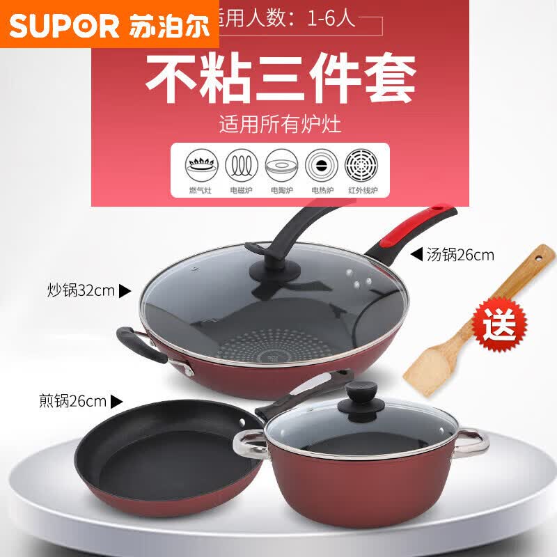 苏泊尔(SUPOR)厨房锅具套装家用三件套电磁炉炒锅汤锅煎锅炒 双盖款[炒锅+煎锅+汤锅]