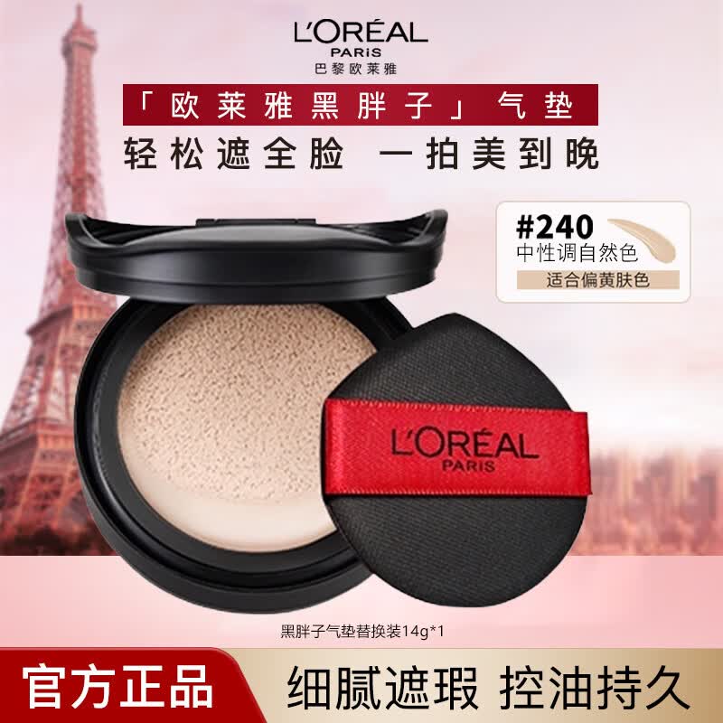 欧莱雅 L'OREAL黑胖子气垫粉底液bb霜自然肤色哑光持久遮瑕控油不脱妆裸妆替换芯 #240 自然健康肤色14g(替换装)