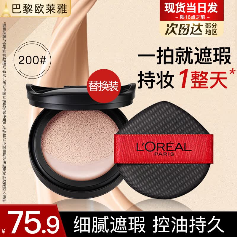 欧莱雅黑胖子气垫粉底替换装恒放溢彩持色哑光遮瑕控油黑金气垫bb干皮 黑胖子200#替换芯14g
