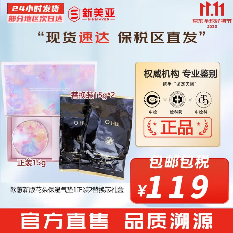 欧蕙(OHUI)气垫CC粉底液欧惠气垫C奇迹水分CC霜含替换芯防晒提亮遮瑕女神 气垫套装1正2替换花朵限量版 45g