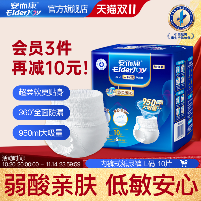 安而康舒柔成人拉拉裤内裤型透气老年人尿不湿10片百分百原生木浆