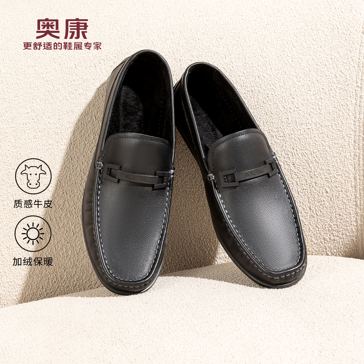 黑色1253024000B 39 奥康 2025冬季新款男鞋舒软乐福鞋平底防滑豆豆鞋简约时尚单鞋