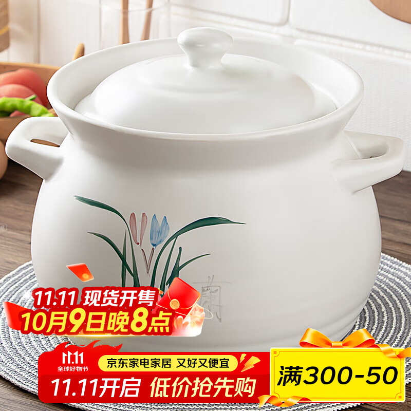 康舒(KANGSHU)煤气灶专用大容量陶瓷砂锅炖锅家用煮粥煲汤汤锅传统中式汤煲炖煲 汤锅(2-4人)破损免费补发 2850ml