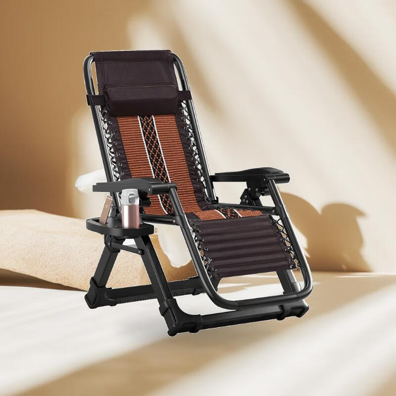 舒康优 躺椅折叠午休午睡床结实靠背椅子老人阳台休闲成人家用舒适睡椅 【新中式】藤条编织木棕色