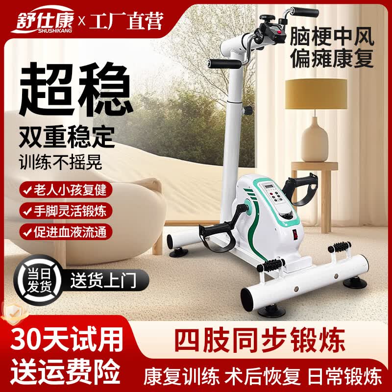 舒仕康康复脚踏车电动卧式健身车家用老年人训练器材偏瘫上下肢手腿中风 送长辈【下肢电动+足底按摩】+手套+防滑垫