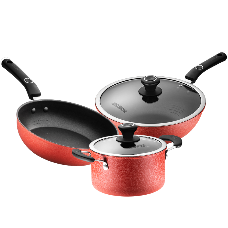 爱仕达锅具套装不粘锅三件套 炒锅煎锅汤锅带木铲 家用少油烟不粘锅具 炒锅30cm 煎锅26cm 汤锅20cm 燃气灶电磁炉通用