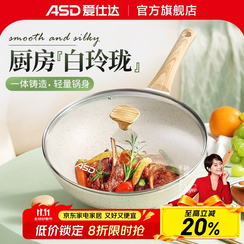 爱仕达(ASD) 炒锅不粘锅麦饭石色家用平底炒菜锅具电磁炉燃气灶煤气灶适用 轻量不粘炒锅 30cm