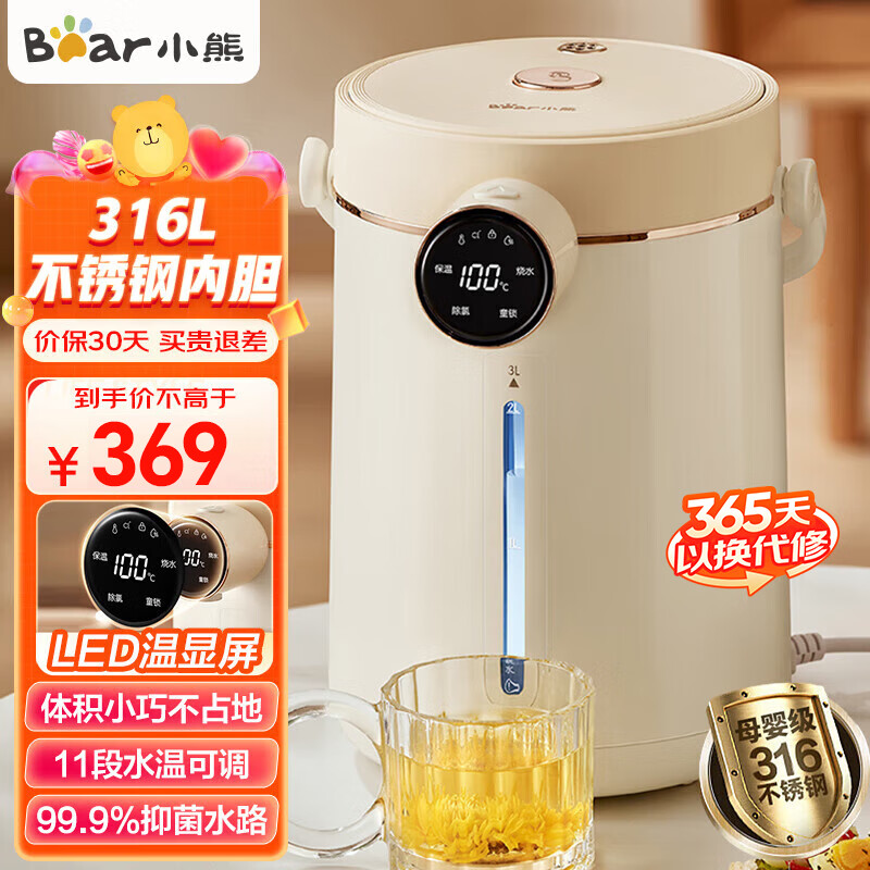 小熊(Bear)电热水瓶316L不锈钢恒温电热水壶烧水壶 3升大容量家用电水壶防烫除氯多段保温 3L 【智能大屏】ZDH-H30G1