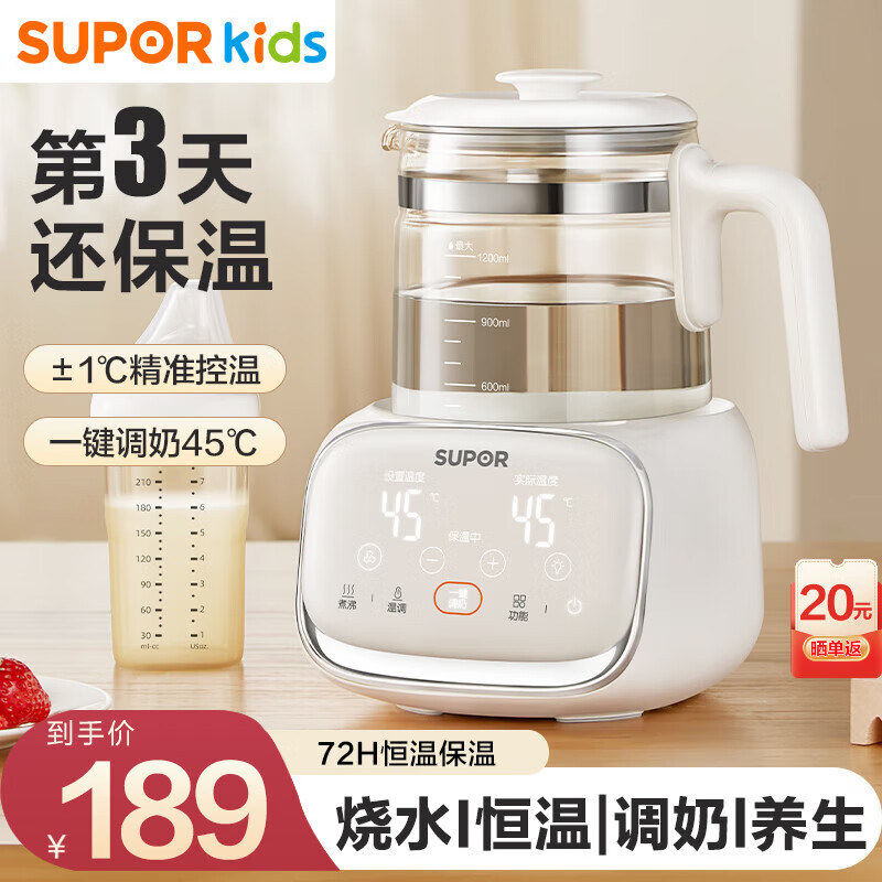 苏泊尔(SUPOR)恒温水壶婴儿调奶器冲奶温奶器全自动冲泡奶保温玻璃恒温壶热水壶 【基础款】 1.2L