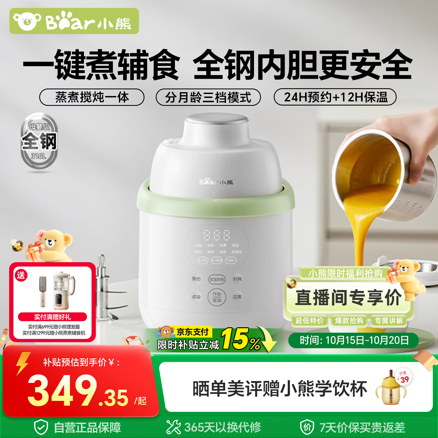 小熊辅食机婴儿打米糊蒸煮一体官方正品宝宝专用小型多功能搅拌机 升级【8叶316L无孔钢轴】单杯单刀