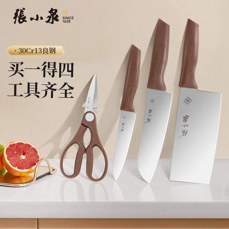 張小泉 张小泉禾趣系列套装刀具六件套 切片刀斩骨刀小厨刀菜刀 D300251